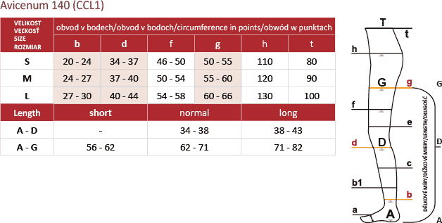 Avicenum PHLEBO 140 WZMOCNIONE zapewniają stopniowany ucisk 18–21 mmHg w okolicy kostki, charakterystyczny dla I klasy kompresji. Największy ucisk w strefie stawu skokowego, który stopniowo zmniejsza się ku górze nogi, wspomaga naturalny przepływ krwi żylnej w kierunku serca.