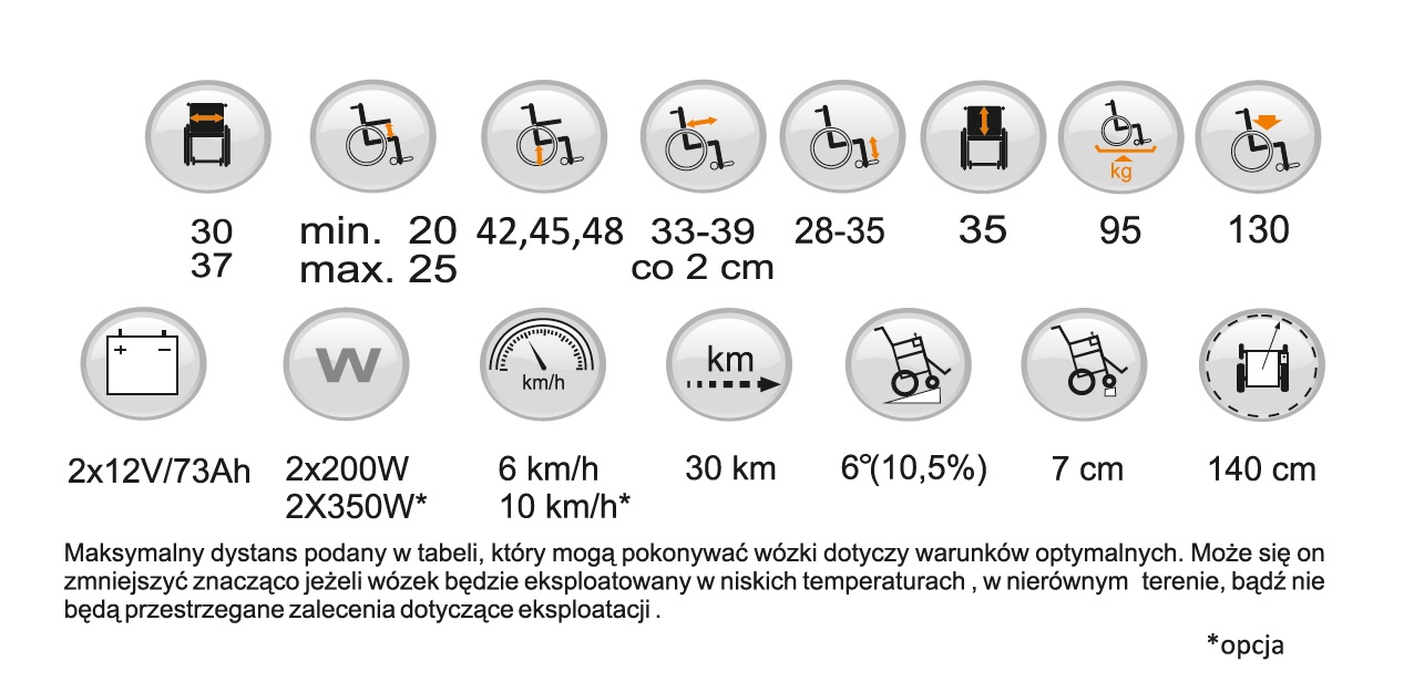 Wózek oferuje również szeroką gamę regulacji, które pozwalają dopasować pozycję siedzącą do indywidualnych potrzeb dziecka. Zmienna szerokość pola siedzenia, regulacja głębokości oraz kąta oparcia gwarantują komfort nawet przy zmianach odzieży (np. zimą). Tapicerka z materiału CORDURA® zapewnia trwałość i odporność na uszkodzenia.