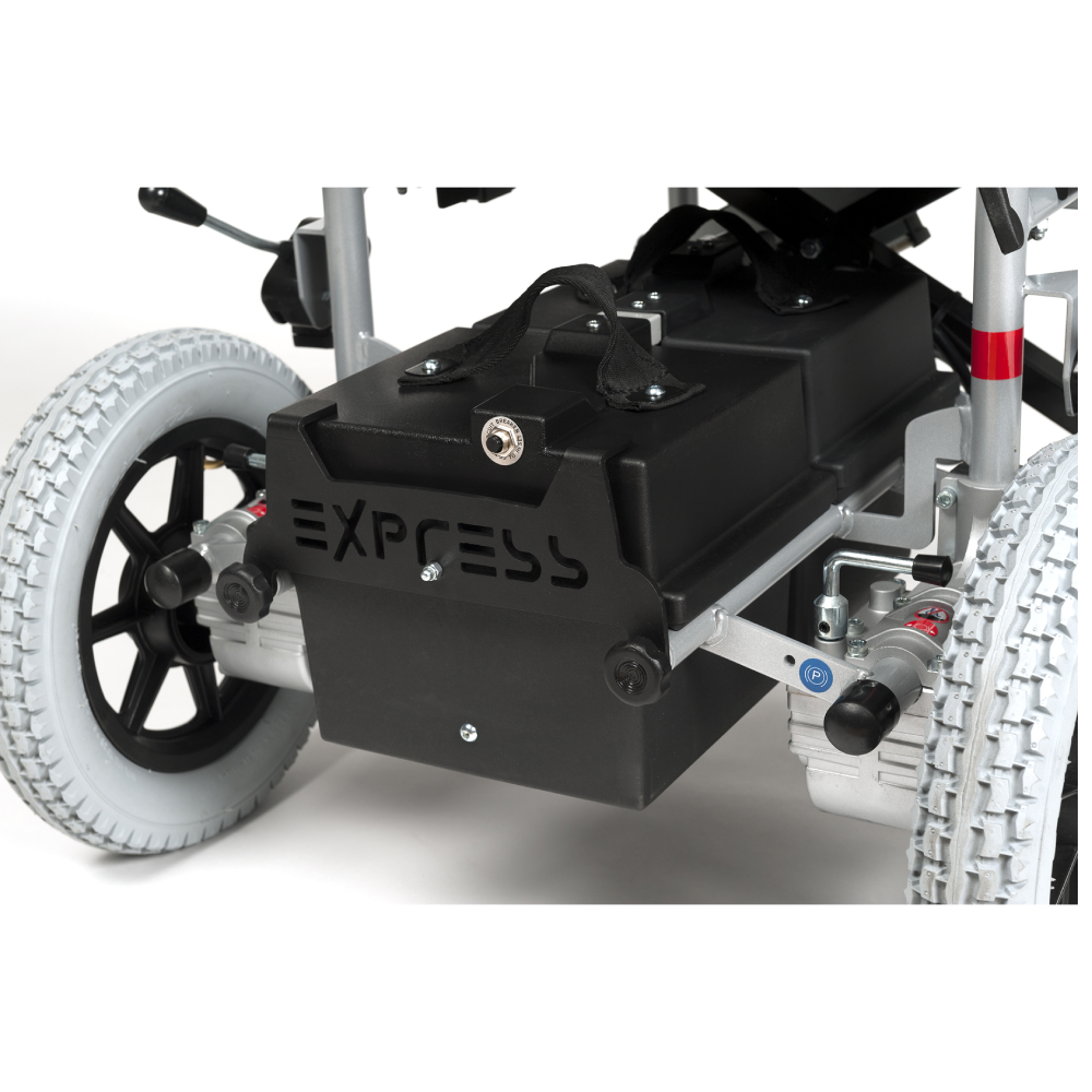 Express to składany wózek elektryczny o konstrukcji na podwójnym, wzmocnionym krzyżaku. Wyposażony w mikroprocesorową jednostkę sterującą LINX, zapewnia płynną jazdę i doskonałą sterowność. Dzięki możliwości szybkiego demontażu elementów oraz rozdzielnym bateriom, wózek można łatwo przewozić nawet w małym samochodzie. Idealny do użytku wewnątrz pomieszczeń, z opcją jazdy po utwardzonych nawierzchniach.