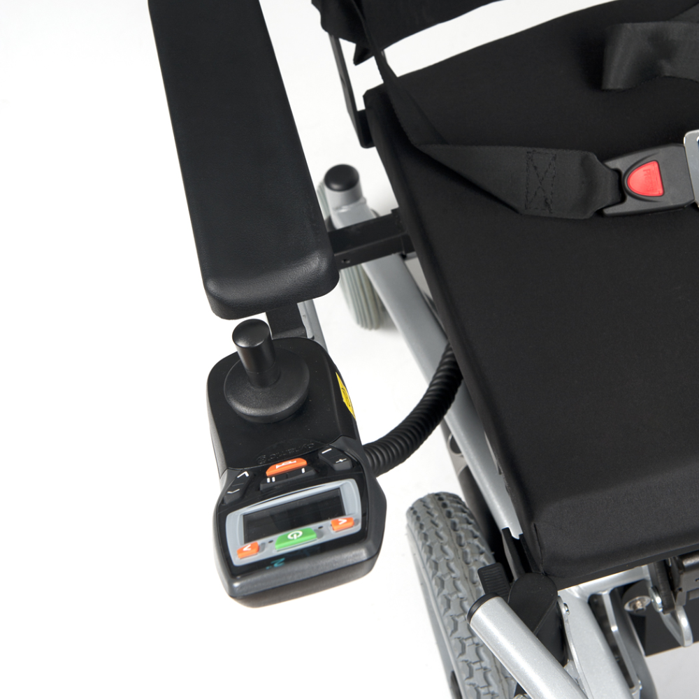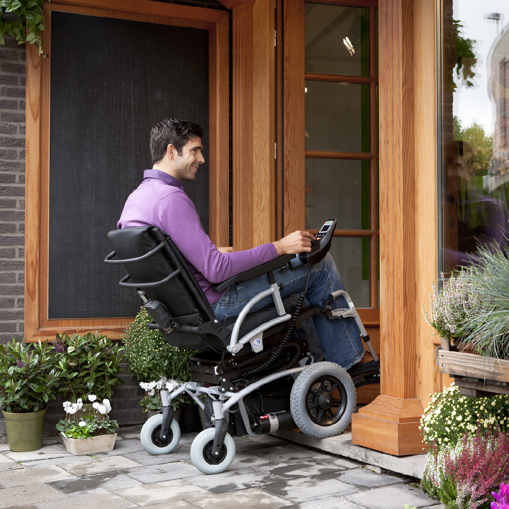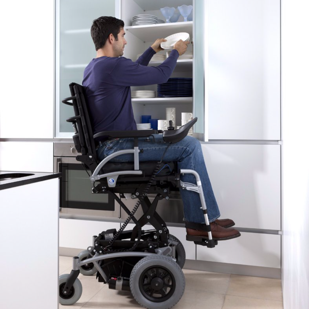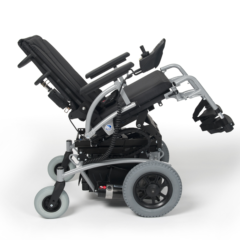 Napęd na przednie koła zapewnia doskonałą zwrotność, co pozwala swobodnie poruszać się nawet w bardzo wąskich przestrzeniach – jak korytarze, łazienki, kuchnie czy windy. Kompaktowe rozmiary sprawiają, że wózek z łatwością mieści się w niewielkim samochodzie, a wygodny system odchylanych podłokietników i regulowanych podnóżków umożliwia łatwy transfer na łóżko, do samochodu lub toalety.