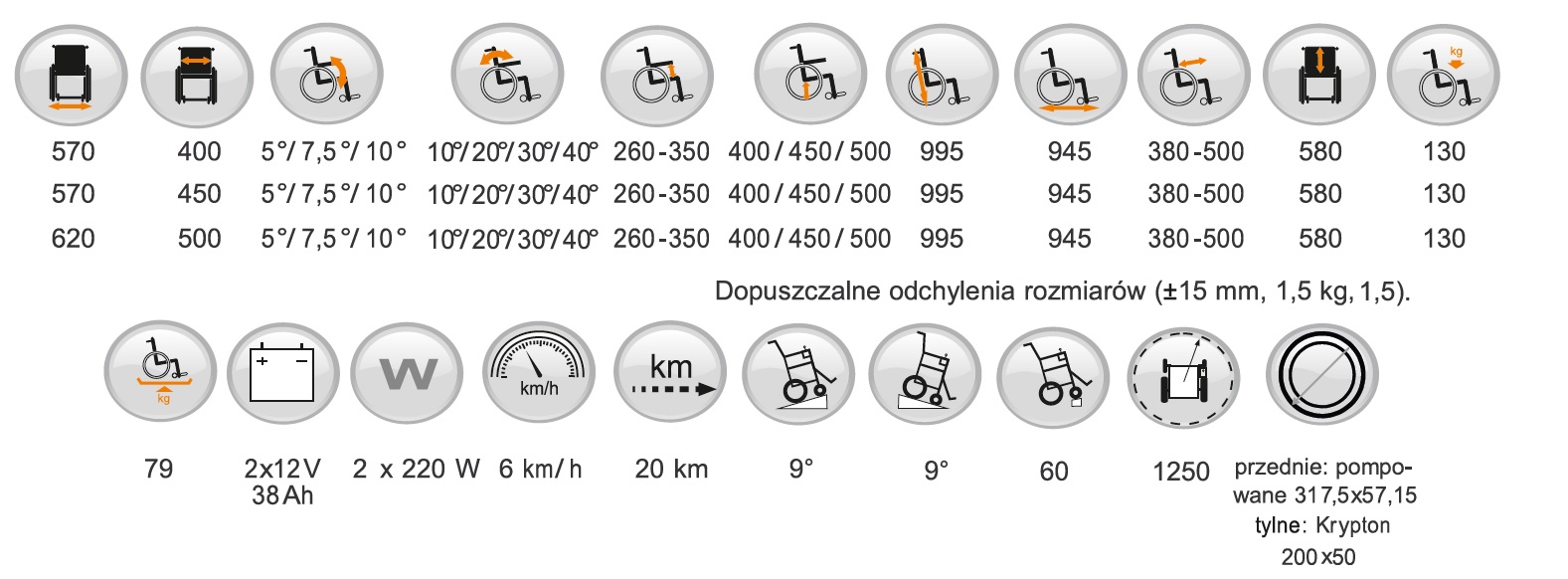 Dopuszczalne tolerancje wymiarowe i wagowe: 15 mm, 1,5 kg i 1,5°.