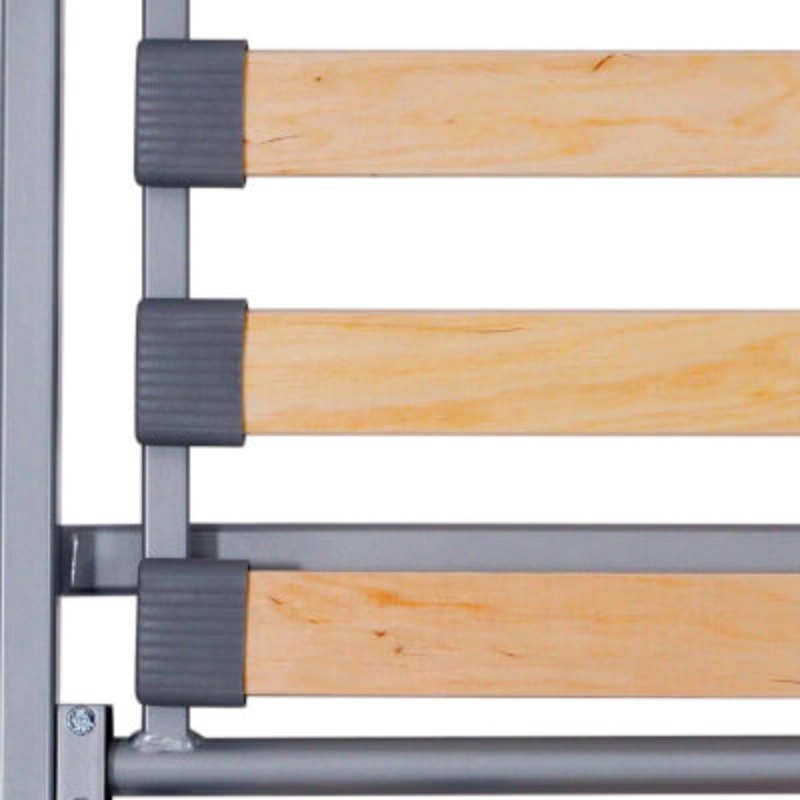 Połączenie elementów drewnianych z mocną metalową ramą malowaną proszkowo sprawia, że łóżko jest stabilne, trwałe i wpisuje się w domową stylistykę.