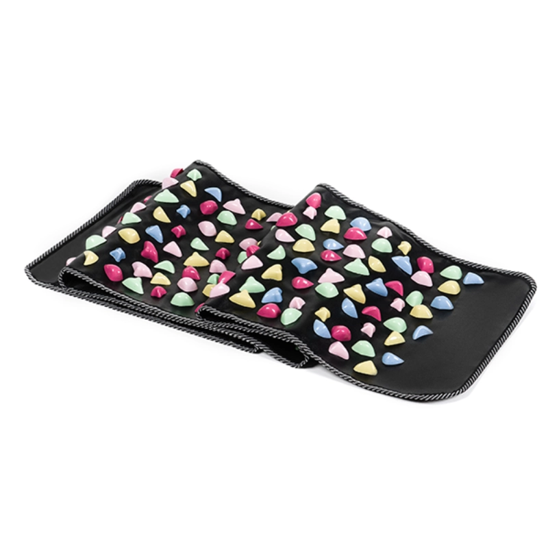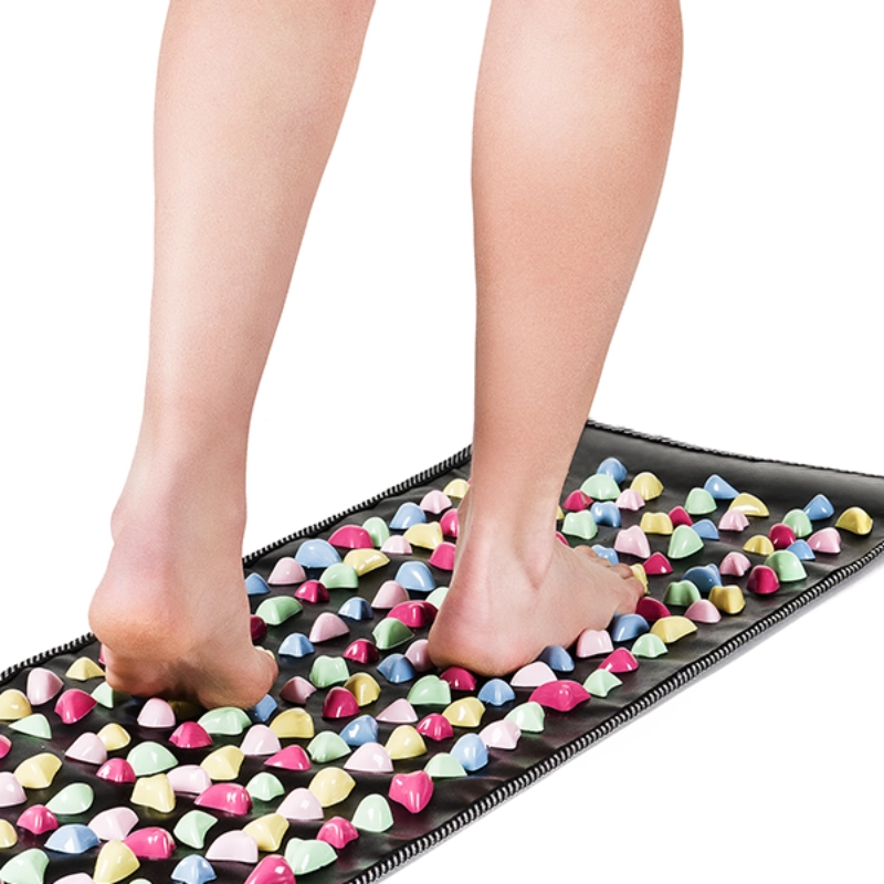 Mata imituje naturalne podłoże, takie jak kamyczki czy szyszki, co aktywuje mięśnie stóp i poprawia ich ukrwienie. Automasaż stóp wpływa korzystnie na pracę narządów wewnętrznych (refleksoterapia) oraz wspomaga utrzymanie prawidłowego wysklepienia łuku stopy, co jest niezwykle ważne w procesie korekcji płaskostopia i koślawości pięt. Produkt jest lekki, łatwy do zwinięcia i przenoszenia – idealny do codziennego użytkowania w domu, biurze lub gabinecie rehabilitacyjnym.