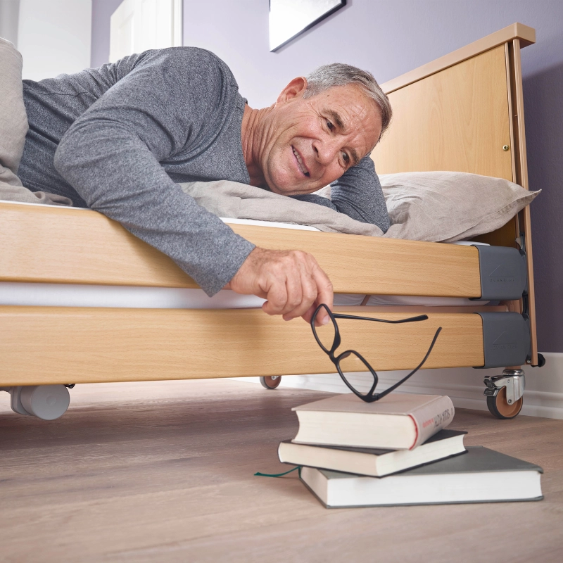 To jedno z najbezpieczniejszych łóżek w swojej kategorii, cenione zarówno w opiece domowej, jak i profesjonalnej długoterminowej. Łączy nowoczesną technologię Burmeier, intuicyjną obsługę i trwałą konstrukcję, która sprawdza się przez lata.