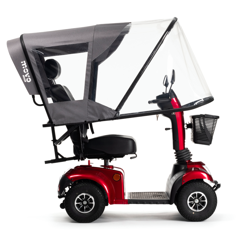 Zaprojektowana z myślą o komforcie jazdy przez cały rok, osłona Movo od Vermeiren skutecznie chroni przed deszczem, słońcem, wiatrem i zimnem. Dzięki możliwości ustawienia w dwóch trybach – jako otwarty baldachim lub zamknięta kabina – idealnie dopasowuje się do aktualnych warunków pogodowych i indywidualnych preferencji użytkownika.