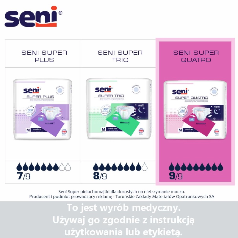 Seni Super Quatro – maksymalna ochrona przy bardzo ciężkim nietrzymaniu moczu i inkontynencji kałowej