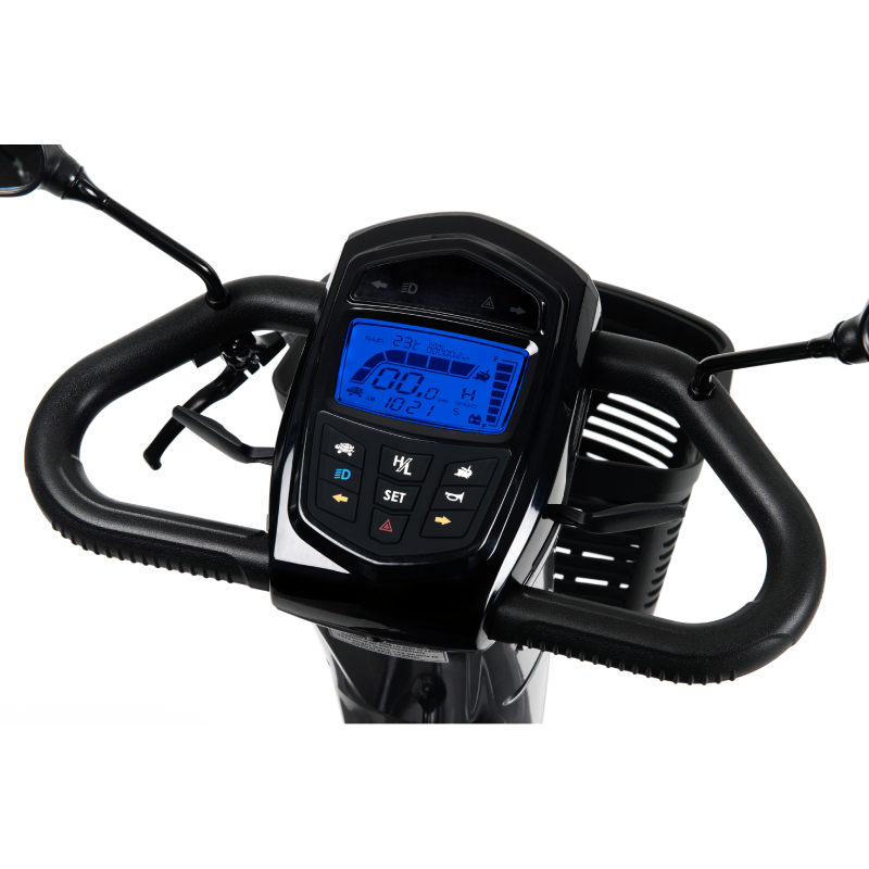 CARPO 4D to nowoczesny skuter elektryczny czterokołowy, stworzony z myślą o komforcie i niezależności użytkowników. Wyposażony w intuicyjny panel sterujący LCD, informuje o stanie baterii, prędkości, godzinie, temperaturze otoczenia oraz ewentualnych awariach.