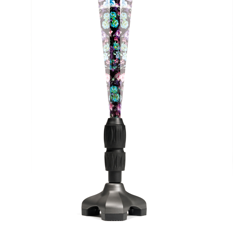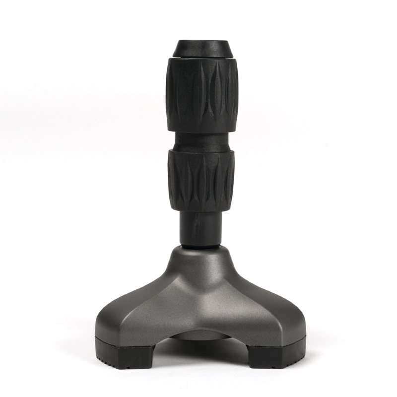 Stopka dynamicznie dopasowuje się do kąta nachylenia laski, zapewniając maksymalny kontakt z podłożem. Dzięki amortyzacji znacząco poprawia wygodę użytkowania, co docenią zwłaszcza osoby zmagające się z bólami stawów. Jej nowoczesny wygląd sprawia, że prezentuje się elegancko i estetycznie – znacznie lepiej niż typowe trójnogi.