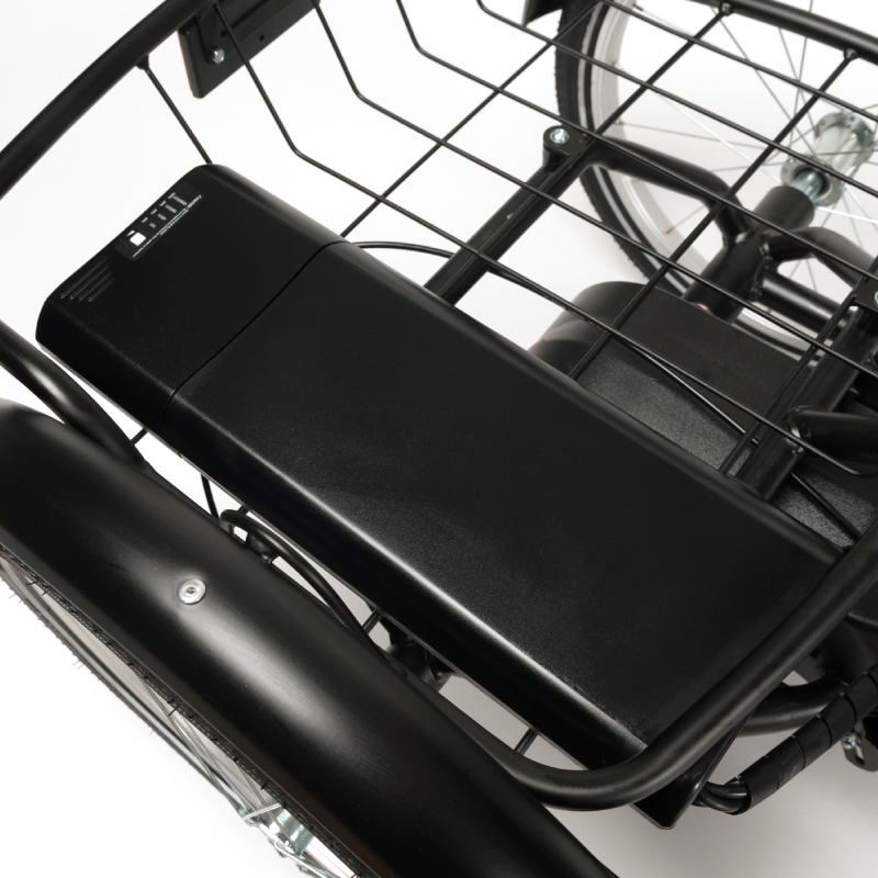 - Demontowalna bateria umieszczona pod tylnym koszem jest lekka i można ją wygodnie naładować w domu.