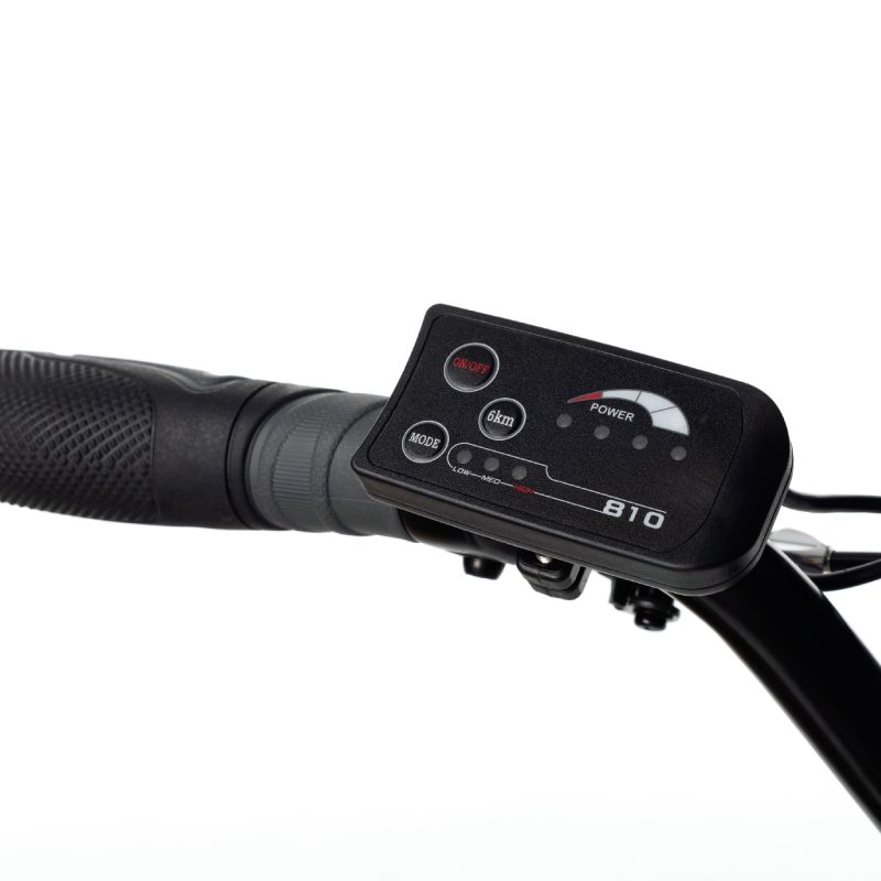 System sterowania jest wyjątkowo prosty — wystarczy nacisnąć przycisk On/Off, aby rozpocząć jazdę. Dodatkowa funkcja BOOSTER pozwala na dynamiczne przyspieszenie, szczególnie przy ruszaniu pod górę.