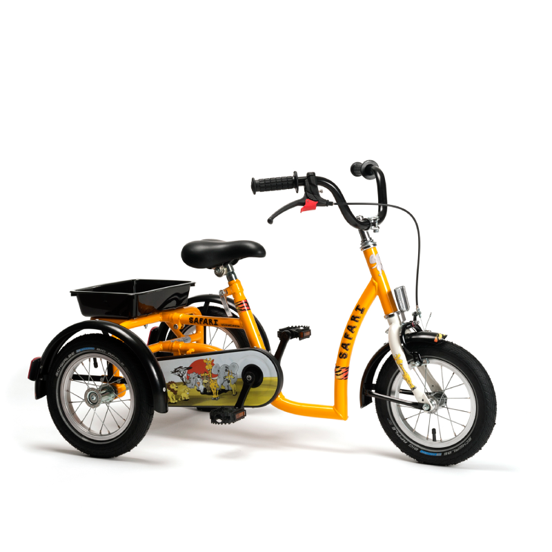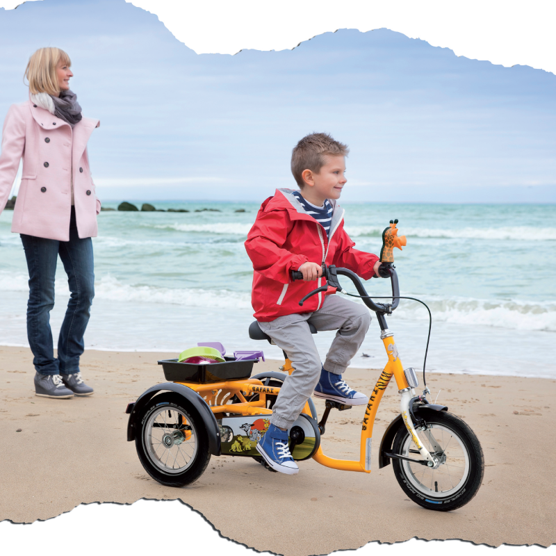 Safari to trójkołowy rowerek terapeutyczny dla dzieci od około 3 lat. Atrakcyjna dekoracja, bezpieczna konstrukcja i regulowane elementy sprawiają, że wspiera rozwój motoryczny, równowagę i dostarcza radości z jazdy.
