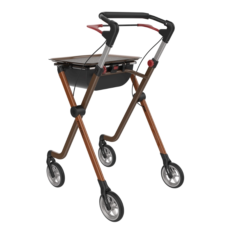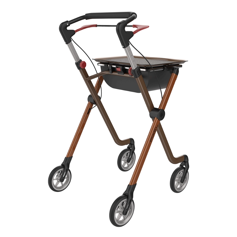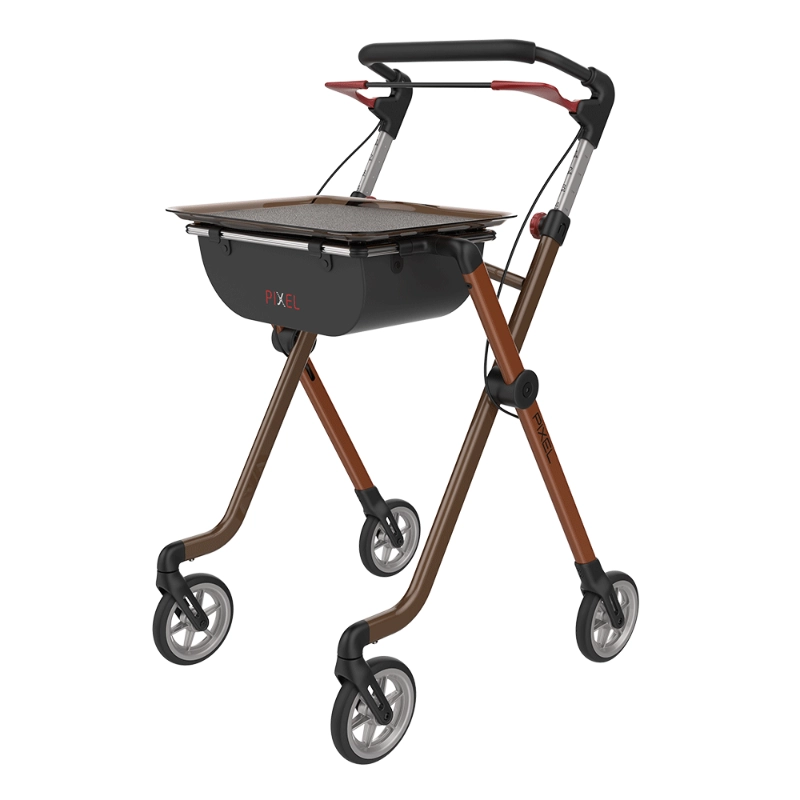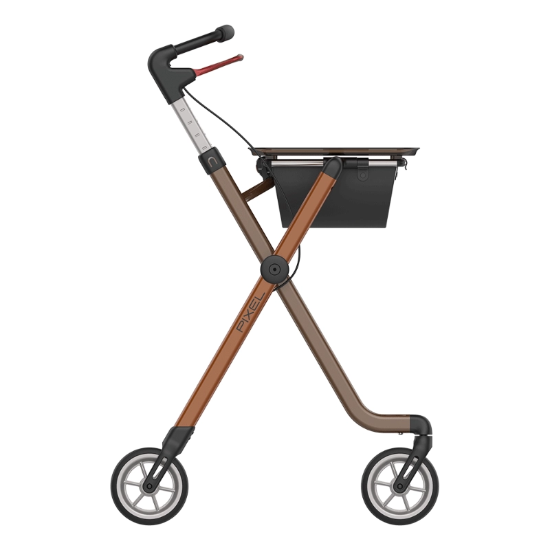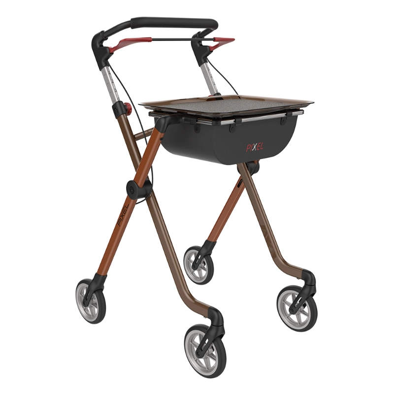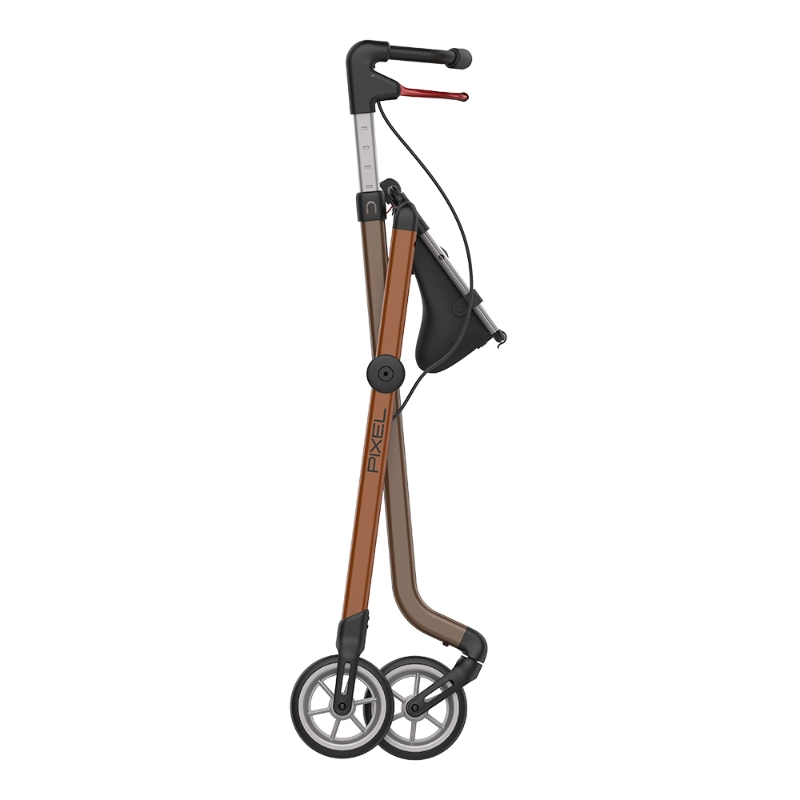 Pixel wyposażono w jednoczęściowy, miękki uchwyt, który można obsługiwać jedną ręką. Szeroka dźwignia hamulca działa niezwykle lekko, zapewniając pewne zatrzymanie urządzenia w każdej chwili. System Click & Safe sprawia, że po złożeniu rolator pozostaje wąski i stoi samodzielnie, co ułatwia jego przechowywanie w małych mieszkaniach.
