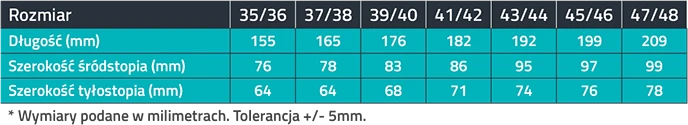 - Główne właściwości: Amortyzacja, odciążenie, wsparcie łuków.