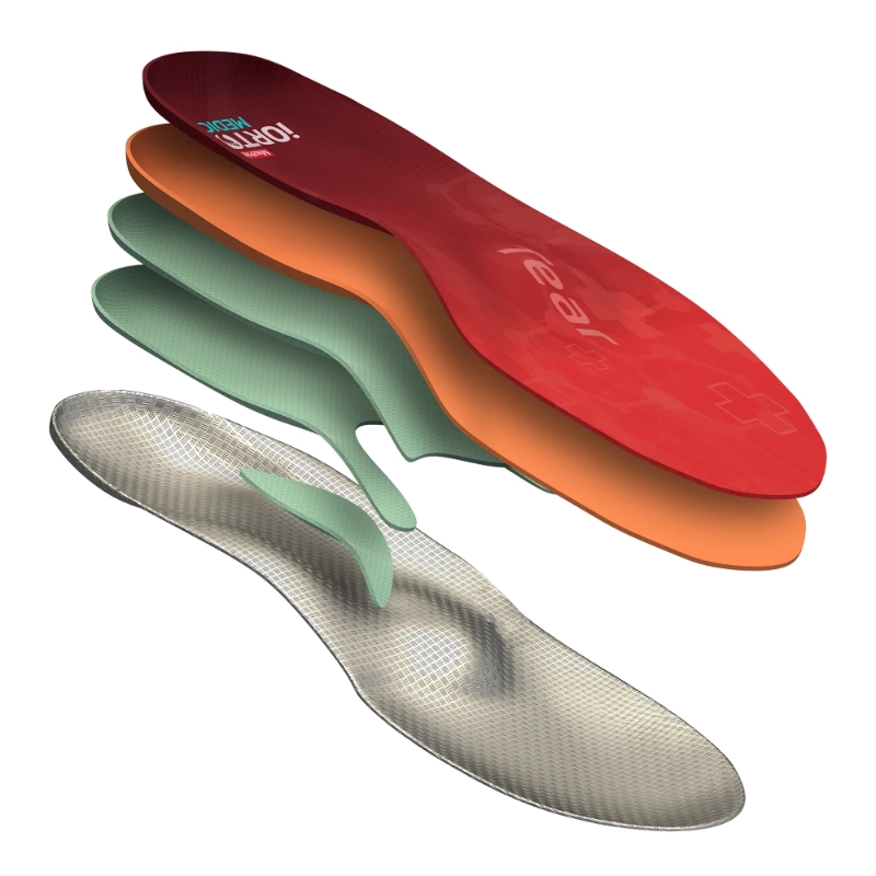 - Dynamiczne Wsparcie Łuku Podłużnego: Wkładka nie jest sztywną „podpórką”. Jej konstrukcja o zmiennej dynamice dostosowuje się do wagi użytkownika, aktywizując mięśnie do pracy i wymuszając prawidłowe przetaczanie stopy.
