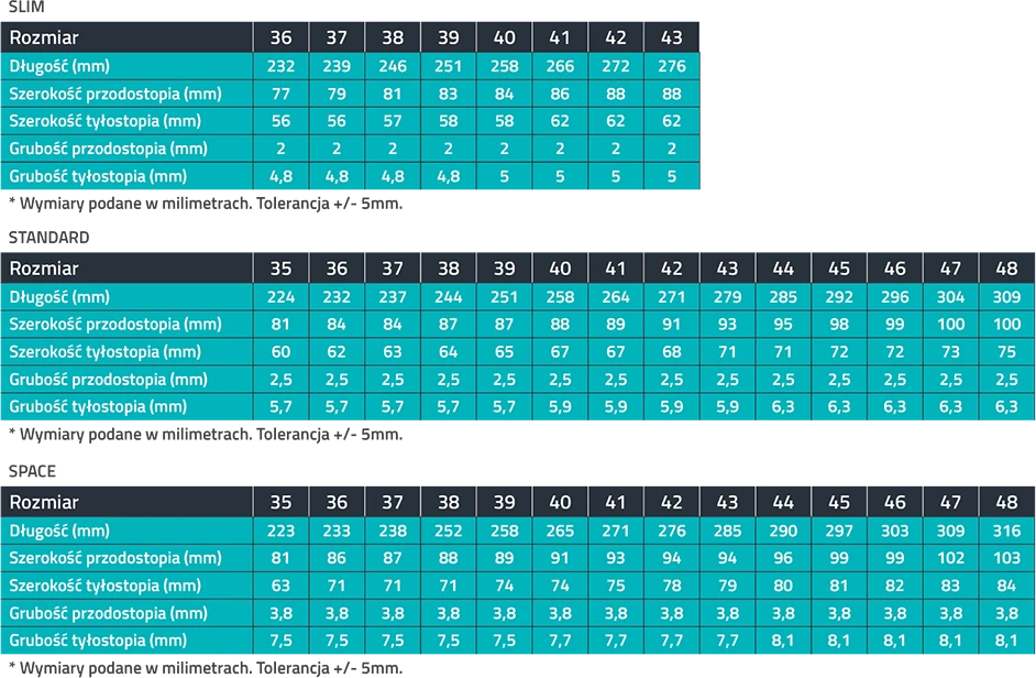 - SPACE (Kod: IO91): Do obuwia szerokiego, sportowego i roboczego.
