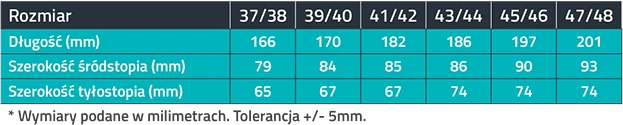 Sprawdź swój rozmiar w tabeli i zamów wkładki Feet 2/3 już teraz, by cieszyć się komfortem i prostym krokiem każdego dnia!