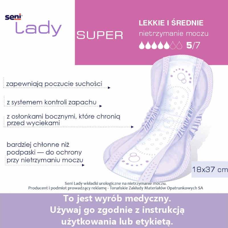 Seni Lady Super – pełna ochrona i kobiecy komfort przy średnim nietrzymaniu moczu