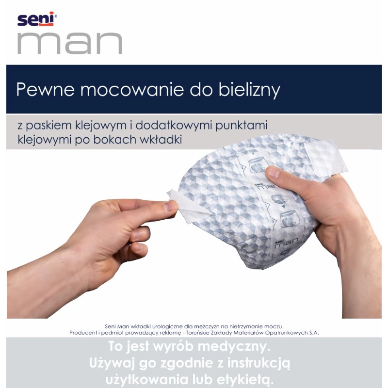 Seni Man Level 4 Extra Plus – oddychające, anatomicznie dopasowane wkładki urologiczne dla mężczyzn z lekkim i średnim nietrzymaniem moczu. Zwiększona chłonność i pełna dyskrecja – idealne także w podróży.