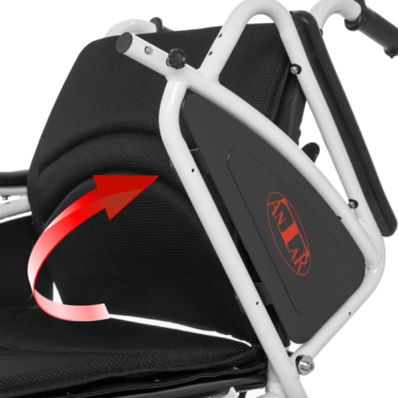 Wózek AT52304 posiada zaawansowaną ramę z mechanizmem składania wzdłuż osi siedziska. Pozwala to na drastyczne zmniejszenie wymiarów urządzenia, ułatwiając jego transport w bagażniku samochodu oraz przechowywanie w domu.