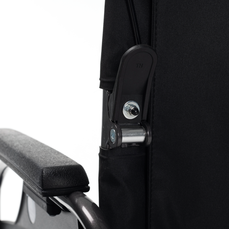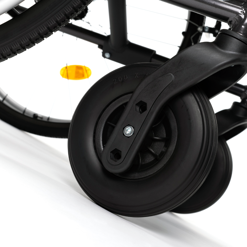 - Podnóżki i podłokietniki ściągane i odchylane – aby po złożeniu wózek zajmował jak najmniej miejsca i można go było przewozić na tylnym siedzeniu auta.