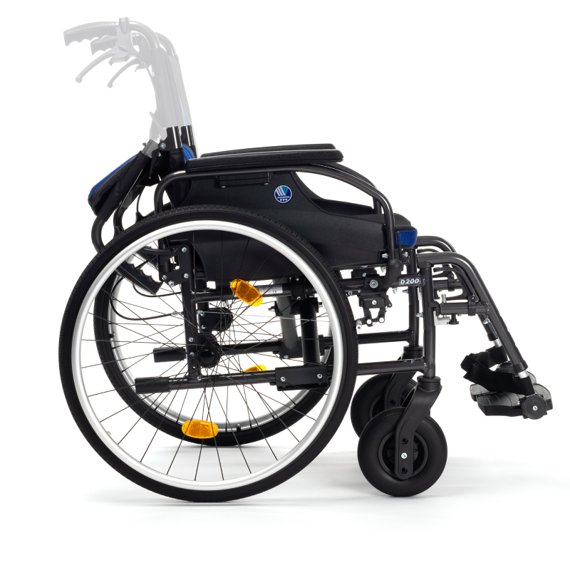 Wózek inwalidzki Vermeiren D200 Split to połączenie nowoczesnego designu, kompaktowej konstrukcji i wysokiego komfortu użytkowania. Aluminiowa rama, możliwość personalizacji, wypinane koła i odchylane podnóżki czynią go idealnym rozwiązaniem zarówno do codziennego poruszania się, jak i do transportu. Dostosowany do potrzeb osób po amputacji, wyposażony w elementy premium już w standardzie – to wózek, który pracuje z Tobą, a nie przeciwko Tobie.