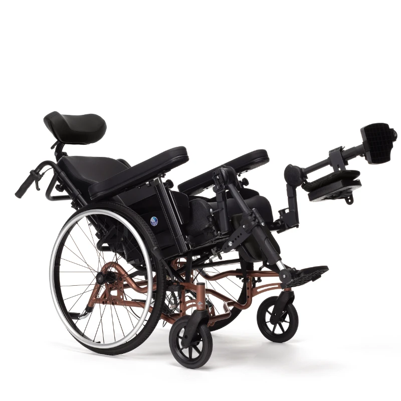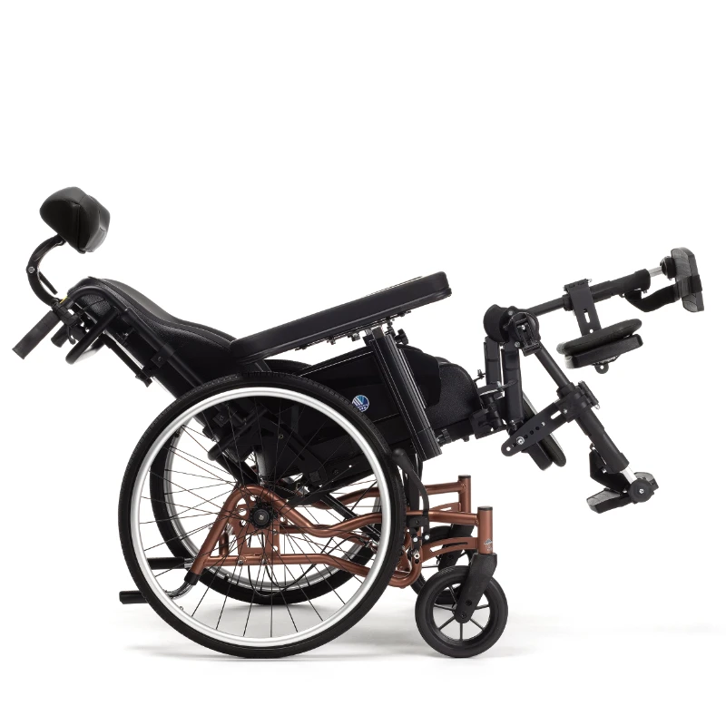 - Multipozycyjny wózek z funkcją „tilt-in-space” – regulacja kąta siedziska (0°–21°) oraz oparcia (0°–54°)